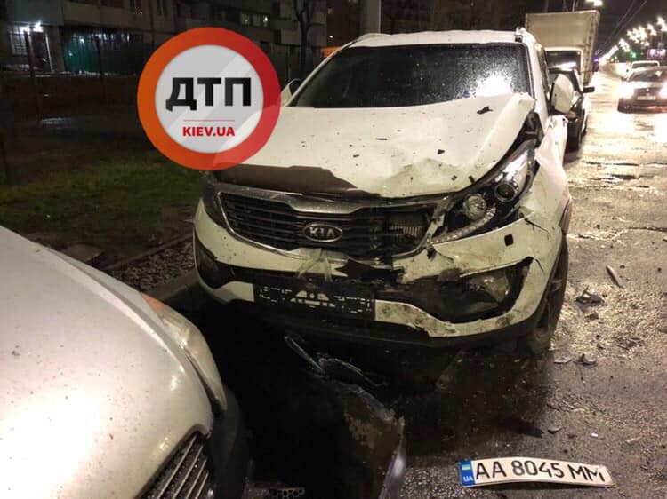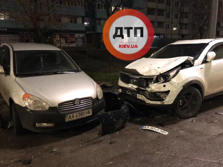 Пьяный дрифт на Троещине закончился столкновением с припаркованными авто. Фото