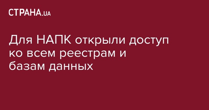 Для НАПК открыли доступ ко всем реестрам и базам данных