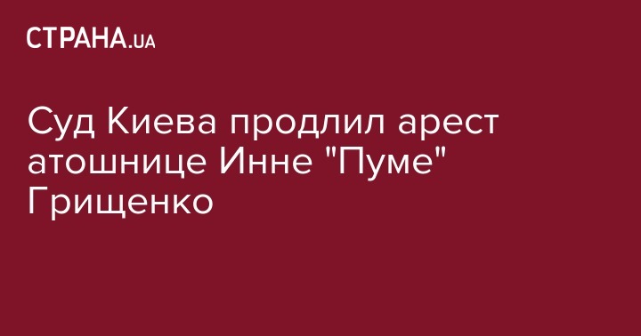 Печерский суд Киева продлил арест ветерану войны на Донбассе Инне Грищенко ("Пума"), подозреваемой в покушении на жизнь бизнесмена из Ивано-Франковской области, до 24 февраля 2020 года. Об этом пишет УП с заседания суда.