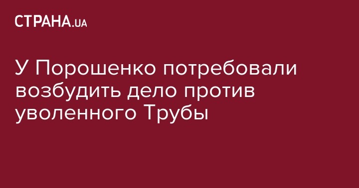 "Партия "Европейская Солидарность" приветствует увольнение дискредитированного главы ГБР Трубы и требует от Генеральной прокуратуры возбудить против него уголовное производство за совершенные Трубой преступления. Наказание за системное нарушение законов и Конституции должно заключаться не только в увольнении руководителя ГБР, но и в уголовной ответственности, которую должен понести он, а также другие фигуранты, присутствующие на "пленках Трубы",- говорится в сообщении.