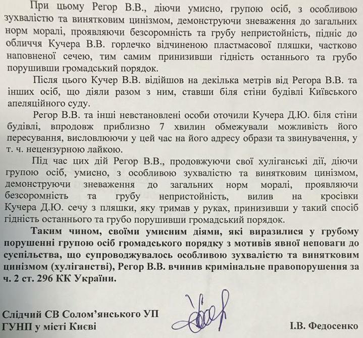 Одному из фигурантов нападения на журналистов под зданием Киевского апелляционного суда во время рассмотрения меры пресечения подозреваемым в убийстве Павла Шеремета, вручили подозрение. Об этом сообщил юрист Андрей Портнов в Телеграме.