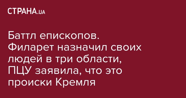 Баттл епископов. Филарет назначил своих людей в три области, ПЦУ заявила, что это происки Кремля