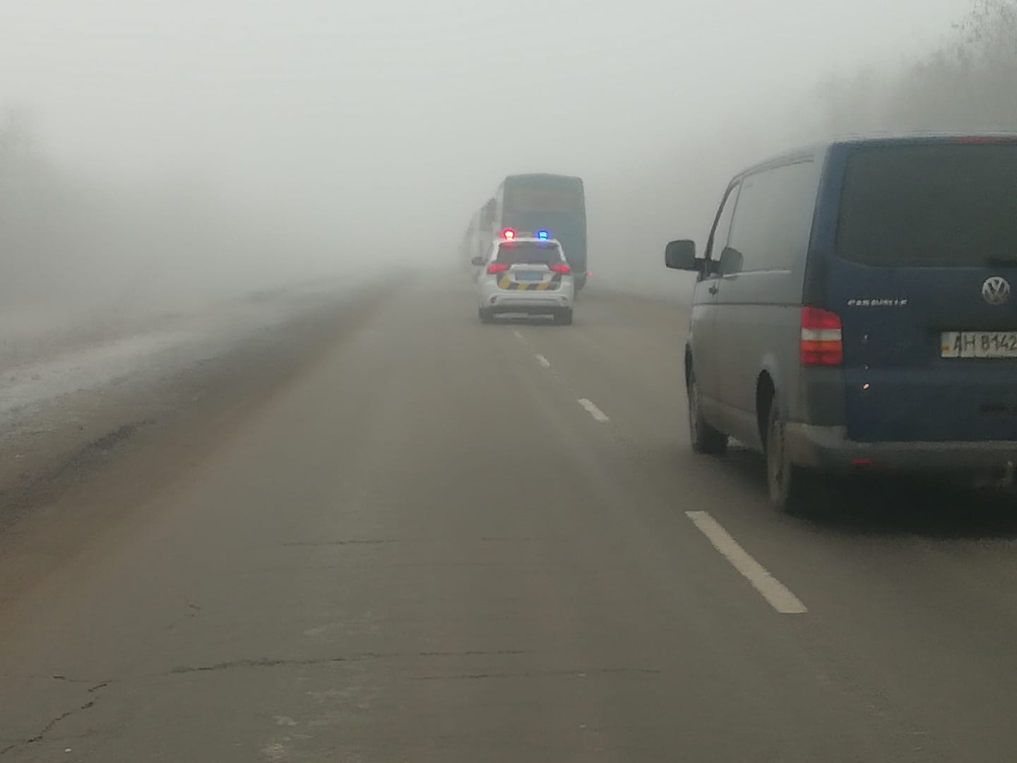 10:44 Колонна, в которой заключенных из Украины везут на обмен. В Донецкой области сильный туман.
