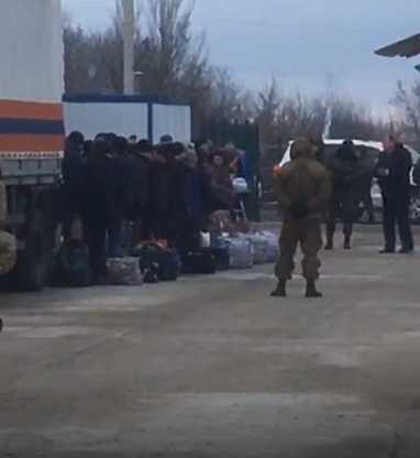 14:08 Через блок-пост сепаратистов под Горловкой проследовали луганчане, который увозят своих освобожденных домой.