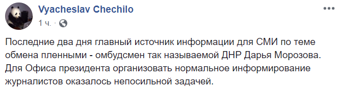 "Последние два дня главный источник информации для СМИ по теме обмена пленными - омбудсмен так называемой ДНР Дарья Морозова.