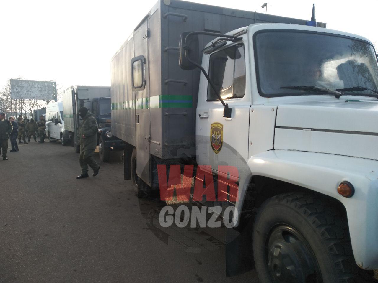 Автозаки с украинскими силовиками находятся на территории контрольно-пропускного пункта на окраине Горловки. На месте присутствуют представители аппарата омбудсменов "ДНР" и "ЛНР", представители Красного Креста и силовых ведомств.