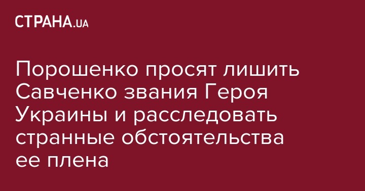 Порошенко просят лишить Савченко звания Героя Украины и расследовать странные обстоятельства ее плена