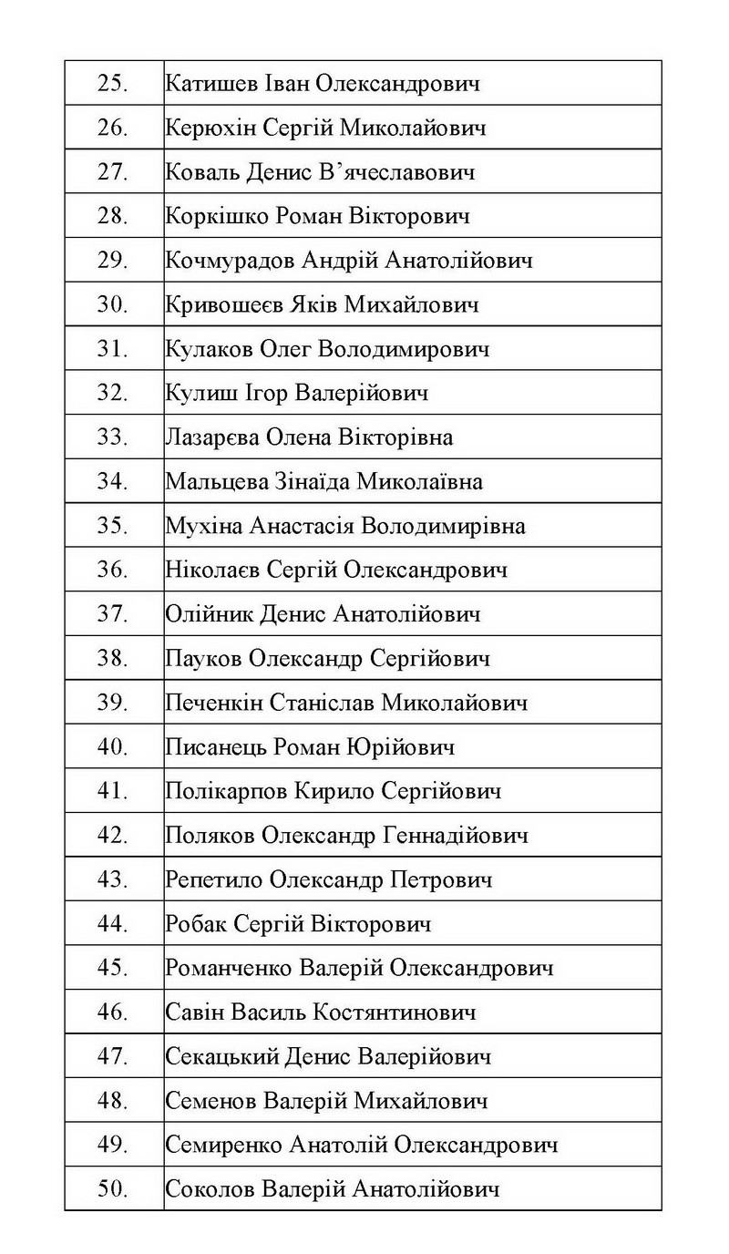 Полный список украинцев освобожденных в результате обмена пленными