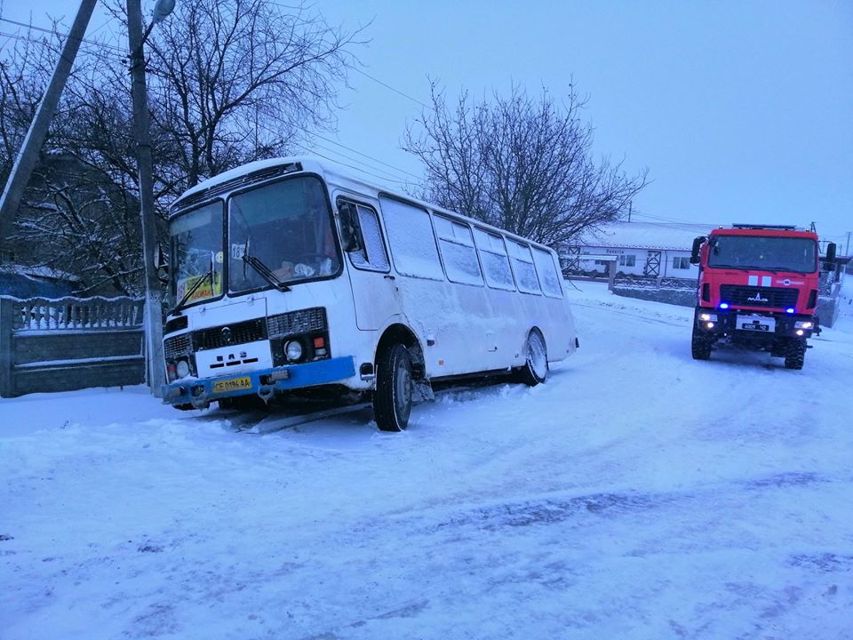 "На протяжении прошлых суток и сегодня спасатели Управления ГСЧС Украины в Черновицкой области оказали помощь водителям из-за осложнения погодных условий на дорогах области. Так, в селе Боривцы Кицманского района 29 декабря утром со скользкой дороги в кювет съехал рейсовый автобус, который курсирует по маршруту Боривцы-Черновцы", - говорится в сообщении.