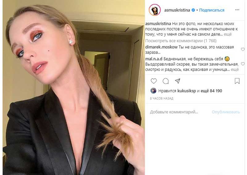 Скандальная 31-летняя российская актриса театра и кино Кристина Асмус была госпитализирована в Москве с острой бактериальной инфекцией.