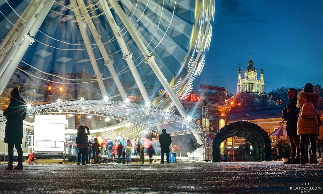 На Подоле функционирует новогодний городок с фудкортом, колесом обозрения и горкой возле него, катком. В новогодние дни там проходят концерты.