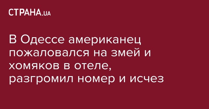 В Одессе американец пожаловался на змей и хомяков в отеле, разгромил номер и исчез