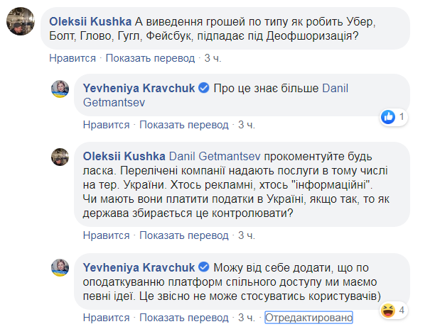 Один из комментаторов поинтересовался под записью, подпадет ли под деофшоризацию вывод денег "по типу как делает Uber, Bolt, Glovo, Google и Facebook".