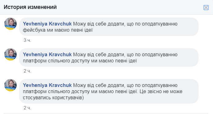 Днем 30 декабря Кравчук запостила ссылку на свою авторскую колонку для одного из популярных СМИ, в которой речь идет о законотворческих планах "слуг народа" в 2020 году. Среди прочего в колонке названа деофшоризация - то есть принятие законов, которые позволят соблюдать принцип: "кто зарабатывает деньги в Украине, должен платить налоги в Украине".