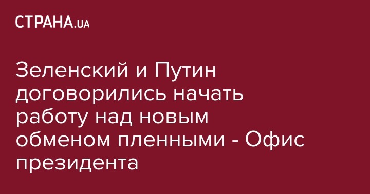 Зеленский и Путин договорились начать работу над новым обменом пленными - Офис президента
