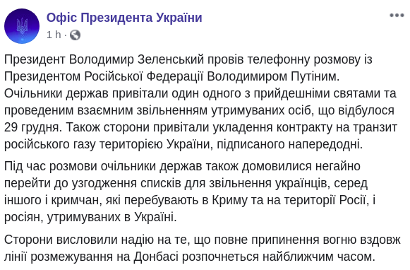 Также мы рассказывали, что Зеленский и Путин поздравили друг друга с Новым годом по телефону.