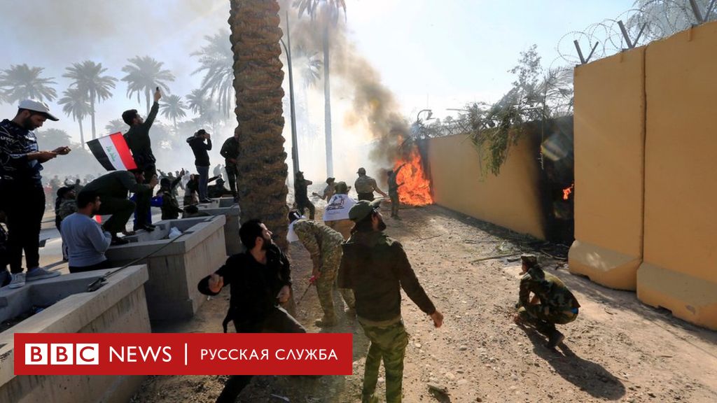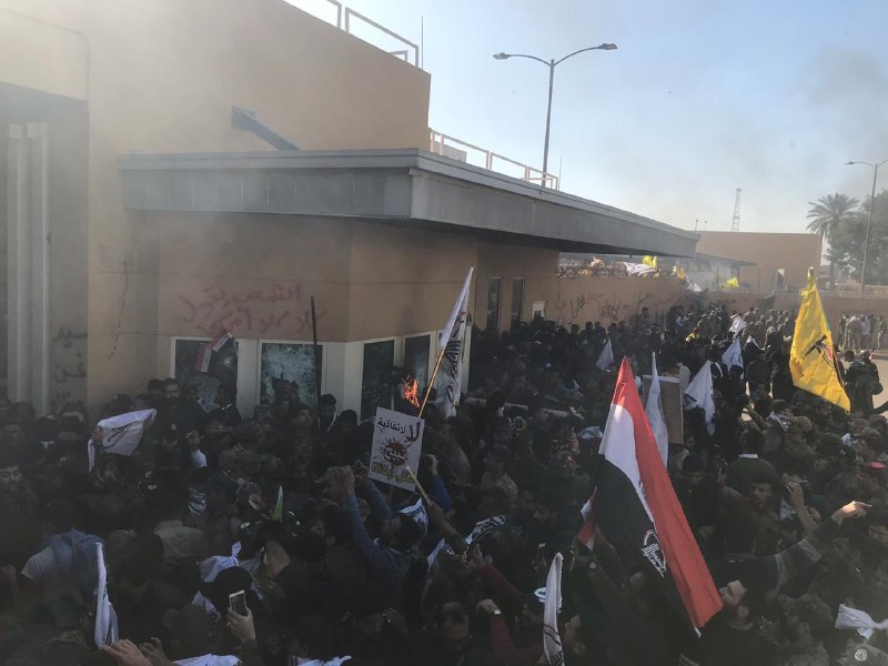 Протестующие в Багдаде штурмуют американское посольство в знак осуждения авиаударов по шиитскому ополчению. Они подожгли забор, устраивают массовые беспорядки.