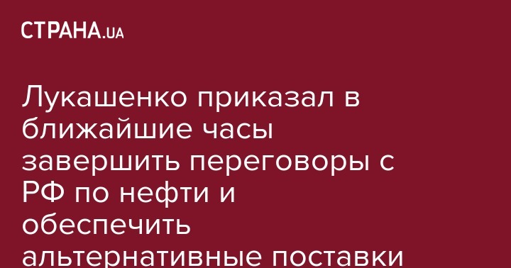 Лукашенко приказал в ближайшие часы завершить переговоры с РФ по нефти и обеспечить альтернативные поставки
