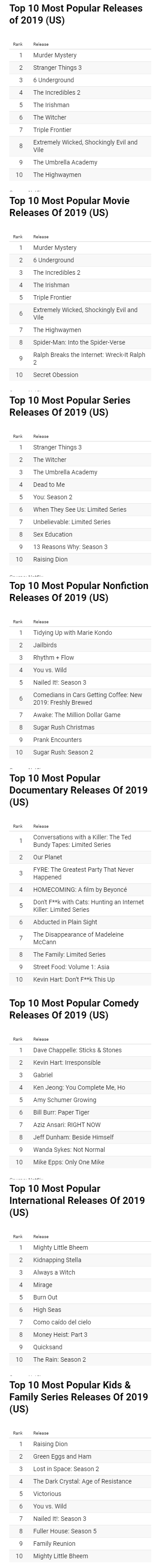 Известная американская компания опубликовала рейтинг наиболее популярных фильмов и сериалов года. Об этом сообщает Deadline.