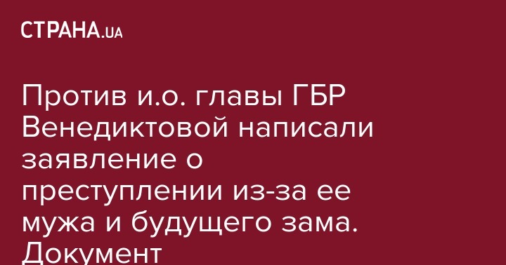 Против и.о. главы ГБР Венедиктовой написали заявление о преступлении из-за ее мужа и будущего зама. Документ