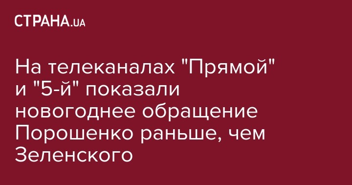 На телеканале Прямой, который связывают с Петром Порошенко, показали его новогоднее выступление вместо обращения президента Украины Владимира Зеленского и только после него - официальное обращение действующего главы государства.