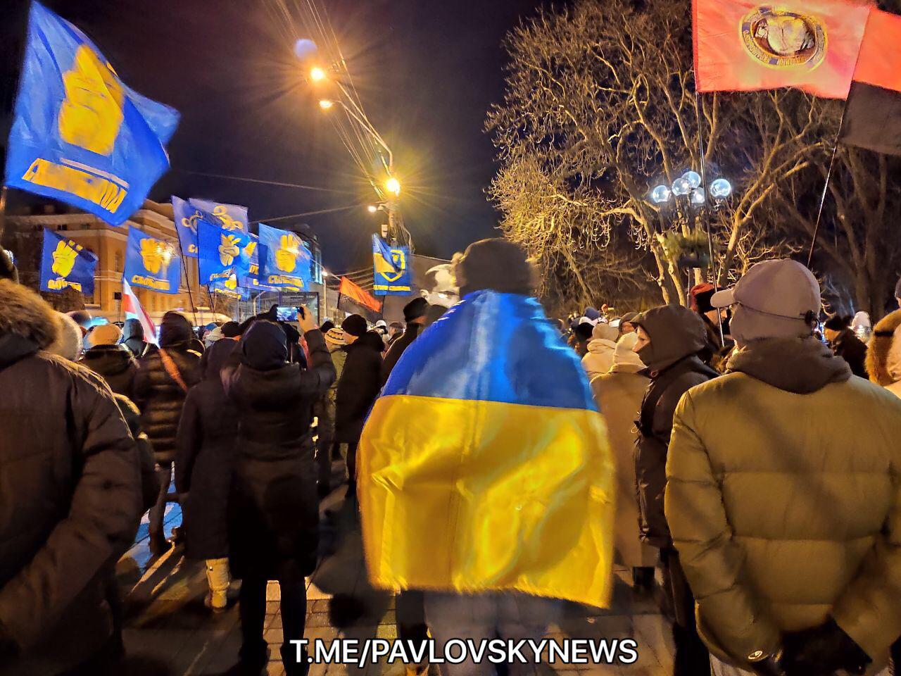 18:33 "Одна нация - одна Украина!", "Наша земля - наши герои!" - скандируют в толпе. Звучит волынка