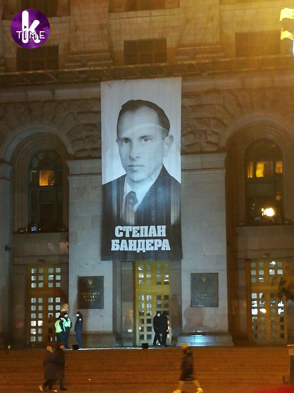 18:30 На здании КГГА вывесили огромный портрет главы ОУН.