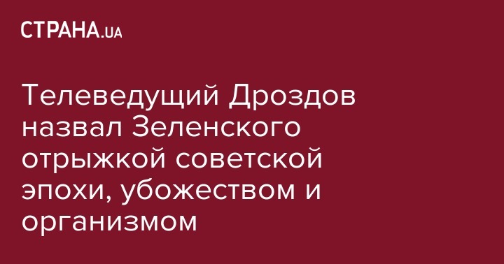 Телеведущий Остап Дроздов, который недавно заявил, что большинство украинцев мечтают "запрыгнуть в русский мир", назвал президента Украины Владимира Зеленского "отрыжкой советской эпохи", а также "убожеством" и "организмом".