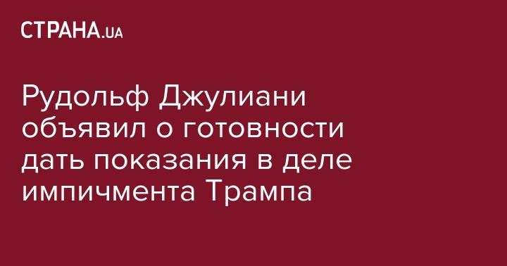Рудольф Джулиани, личный адвокат президента США Дональда Трампа, заявил, что готов дать показания в ходе разбирательства по импичменту и сделать все возможное, чтобы добиться оправдания президента. Об этом сообщает Голос Америки.