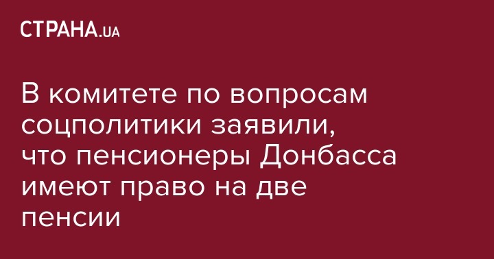 В комитете по вопросам соцполитики заявили, что пенсионеры Донбасса имеют право на две пенсии