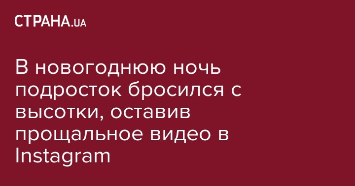 В новогоднюю ночь подросток бросился с высотки, оставив прощальное видео в Instagram