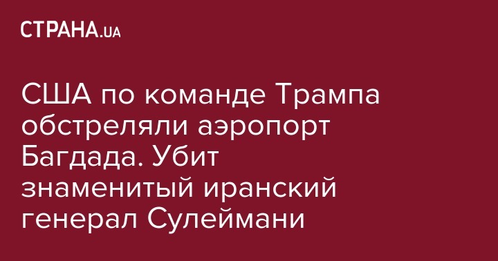 Чуть позже издание The Guardian сообщило, что в аэропорту Багдада убит генерал Ирана Кассем Сулеймани. "Генерал Сулеймани активно разрабатывал планы нападения на американских дипломатов и военнослужащих в Ираке и во всем регионе. Этот удар был направлен на то, чтобы сдержать будущие планы иранских атак. Соединенные Штаты будут продолжать принимать все необходимые меры для защиты наших людей и наших интересов,по всему миру", - говорится в заявлении Пентагона.
