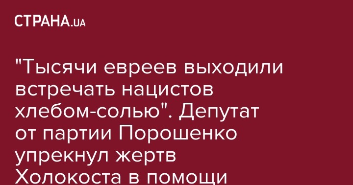 "Тысячи евреев выходили встречать нацистов хлебом-солью". Депутат от партии Порошенко упрекнул жертв Холокоста в помощи немцам