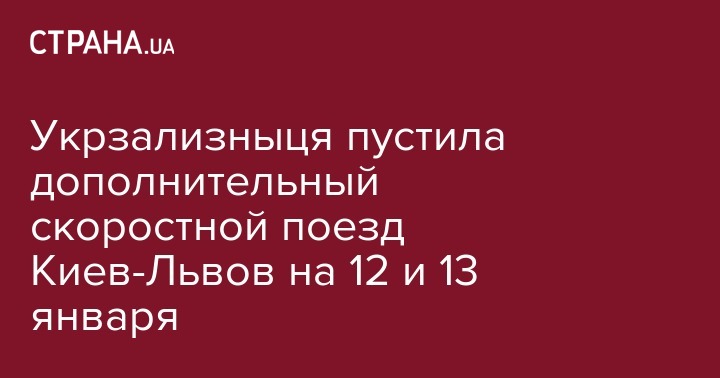 Укрзализныця пустила дополнительный скоростной поезд Киев-Львов на 12 и 13 января