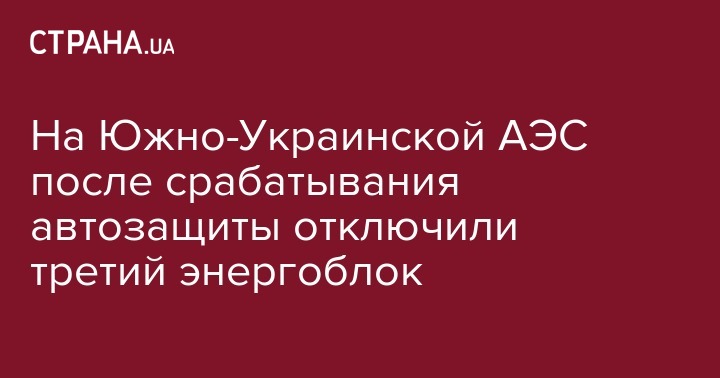 На Южно-Украинской АЭС в Николаевской области произошло автоматическое отключение третьего  энергоблока из-за срабатывания автоматической защиты.
