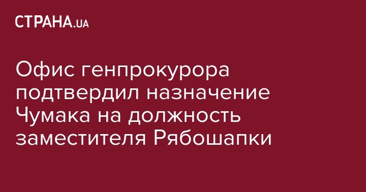 Генеральный прокурор Украины Руслан Рябошапка назначил Виктора Чумака, который занимал должность главного военного прокурора, на должность своего зама. Об этом говорится на сайте Офиса генпрокурора.