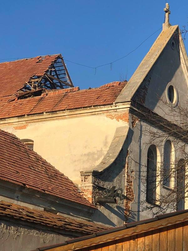 В галерее уточнили, что крыша над монастырем и костелом была полностью заменена в послевоенные годы советской властью "без соблюдения соответствующих технологий", а во время реконструкции был использован неподходящий вид древесины.