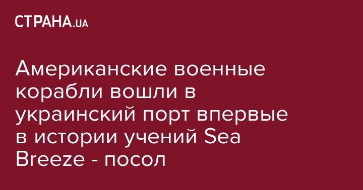 Чрезвычайный и полномочный посол США в Украине Джеффри Пайетт заявил, что два американских корабля вошли в порт Одессы впервые в истории учений Sea Breeze. Об этом сообщает пресс-служба Минобороны.
