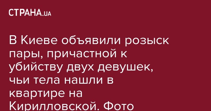 Подозреваемых в убийстве двух девушек, тела которых обнаружили в арендованной квартире в Киеве, объявили в розыск.