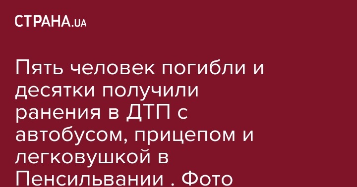 Пять человек погибли и десятки получили ранения в ДТП с автобусом, прицепом и легковушкой в Пенсильвании . Фото