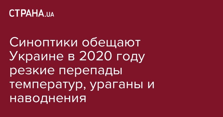 Синоптики прогнозируют Украине в 2020 году мягкую зиму, затяжную весну и жаркое лето. При этом велика вероятность ураганов и наводнений. Об этом рассказала завотделом климатических исследований и прогнозов погоды Украинского гидрометеорологического института ГСЧС Украины и НАН Украины Вазира Мартазинова, пишет "Сегодня".