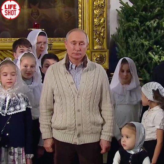 Президент России Владимир Путин на Рождество удивил сменой имиджа. Он появился на рождественской церковной службе в Спасо-Преображенском соборе Санкт-Петербурга в неофициальной рубашке и домашнем кардигане. Видео Путина в окружении детей опубликовали российские Telegram-каналы.