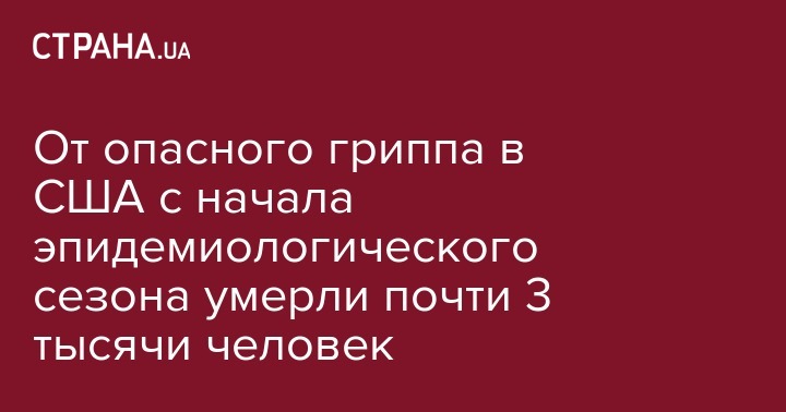 От опасного гриппа в США с начала эпидемиологического сезона умерли почти 3 тысячи человек