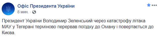 "Страшная весть с Ближнего Востока. Сегодня утром после взлета из международного аэропорта Имам Хомейни (г. Тегеран) пассажирский самолет авиакомпании "Международные авиалинии Украины" потерпел катастрофу и упал недалеко от аэропорта.