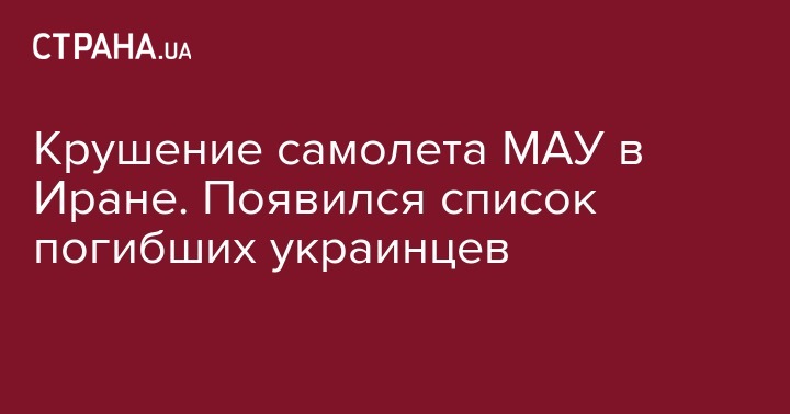 Крушение самолета МАУ в Иране. Появился список погибших украинцев