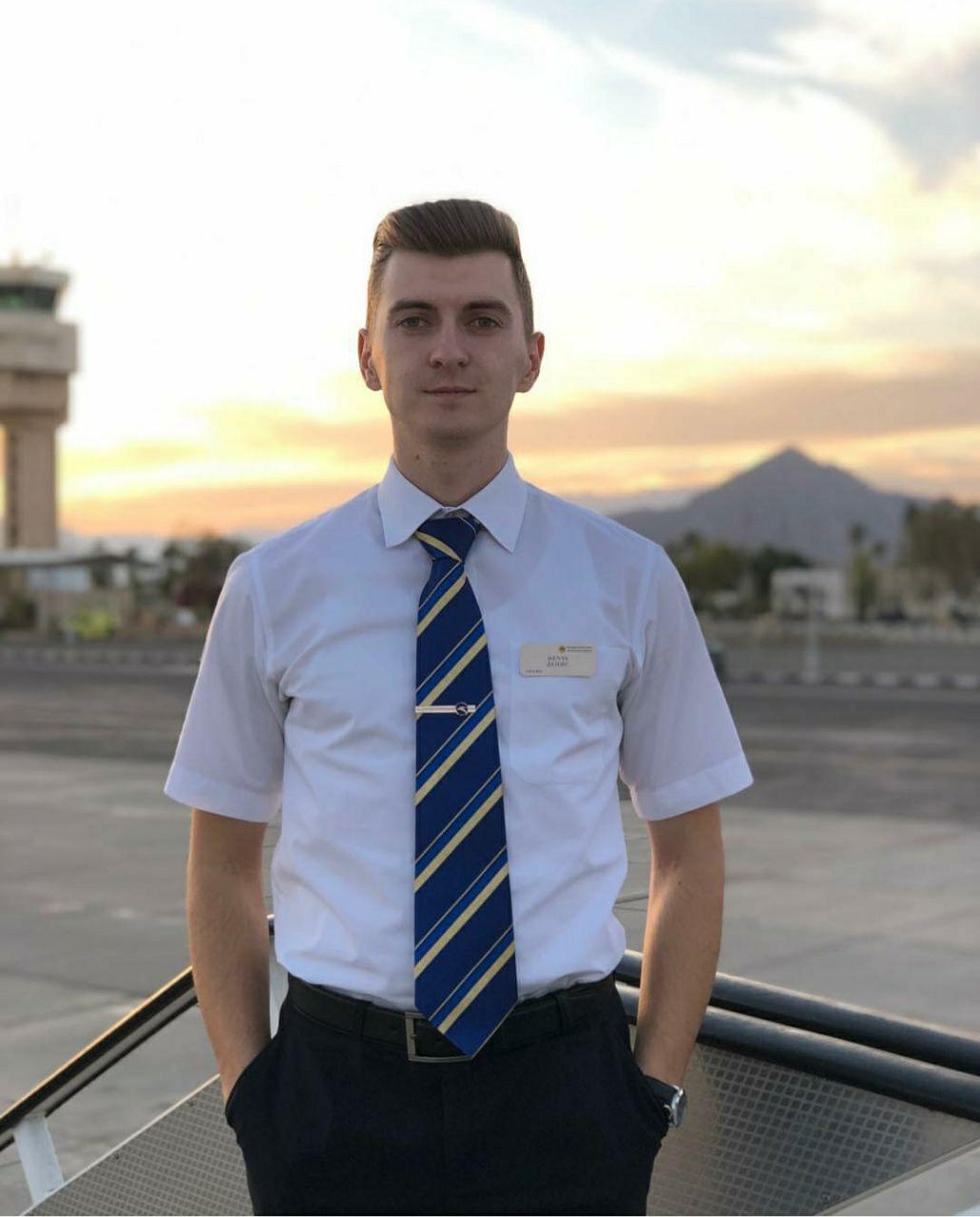 Игорь Матьков. Старший бортпроводник. 34 года. Окончил факультет иностранных языков (арабист) Киевского национального лингвистического университета, а перед тем учился в Кировоградском летном училище. Проработал в МАУ 10 лет. Готовился стать пилотом, получил соответствующую лицензию.