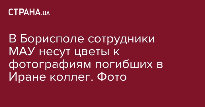 В Борисполе сотрудники МАУ несут цветы к фотографиям погибших в Иране коллег. Фото