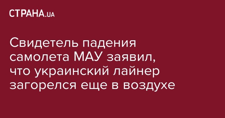 Очевидец падения украинского гражданского самолета авиакомпании МАУ рассказал журналистам, что лайнер загорелся еще в воздухе.