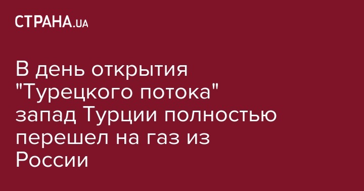 В день открытия "Турецкого потока" запад Турции полностью перешел на газ из России