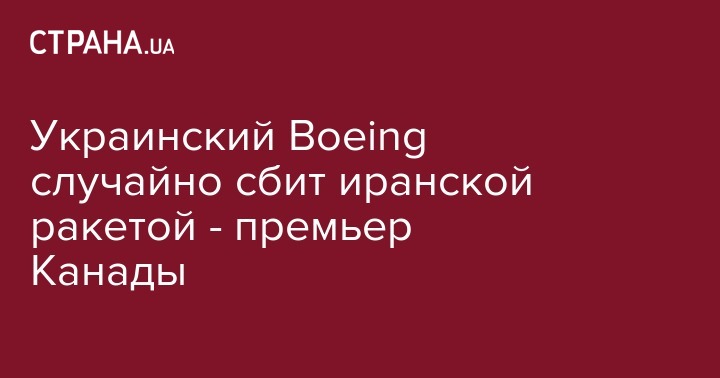 Премьер Канады Джастин Трюдо на специальном брифинге заявил, что получил информацию разведки, свидетельствующую, что украинский Boeing случайно сбит иранской ракетой